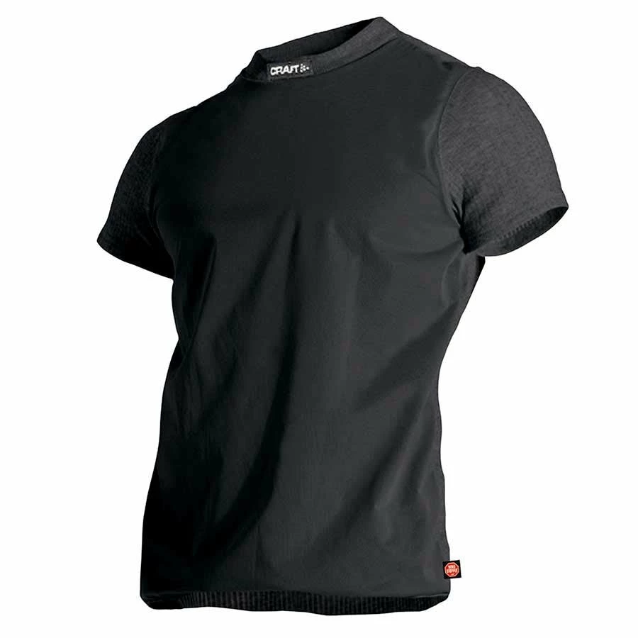 Craft Active Comfort RN SS Baselayer T Shirt. Soft and seamless torso with semi-relaxed fit that keeps you dry,warm and comfortable. If you want only one baselayer “ one that is comfortable and great looking and offers excellent function “ then Active Comfort is probably the best choice you can ever make. This soft and comfortable tee keeps you dry and warm during all kinds of physical activities and works both as a baselayer in colder conditions and as a training tee in milder temperatures. The garment comes with ergonomic fit for optimal freedom of movement and seamless design for maximum comfort. In addition, bodymapped fabric structures provide efficient body-temperature management.70% Polyester 30% Polyamide.