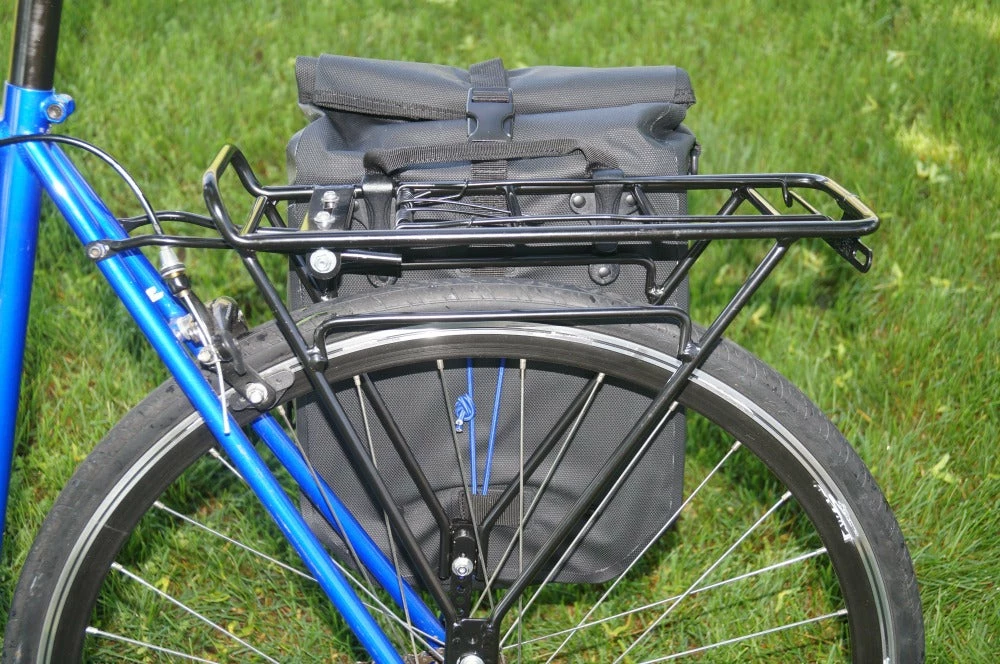 Fits most rear racks with strong plastic clips and a bungee net for tension on the rack
