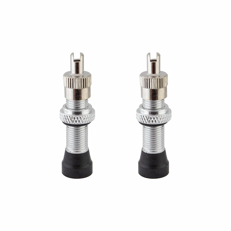 Tubeless Schrader valves made from lightweight alloy with removable cores