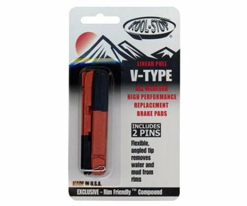 Rated a Consumers Choice Best Buy for superior performance, durability, and value, Kool Stop V-Type Brake Pad Inserts teem with rim-grabbing technology. Special Kool Stop rubber compound is both sticky and durable, and multiple water displacement grooves and Kool Stop plow tip ensures total rim contact is made, regardless of the conditions.