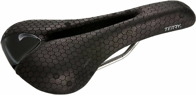 The Terry Mens Fly Titanium Saddle is the ultimate bike seat for men, tested and highly praised by magazine editors and doctors at the University of Cologne, raced on by pro riders, ridden and universally loved around the world. Introduced in 1999, the Italian-made Fly was a joint project between Terry and Selle Italia to develop the ultimate in a comfortable performance-level saddle for men. More padded than euro-style racing saddles; completely cut away through the mid-section, making it flexible and comfortable against soft tissues; low profile, flat top with multi-density injection molded foam that’s a bit stiffer in the rear for more power while pedaling; lightest weight ti-316 rails; textured leather that wears beautifully over time and keeps you in position. Made in Italy. length x width: 277mm x 140mm weight: 240 g / 8.5 oz. rails: Ti-316 cover/features: black textured leather.