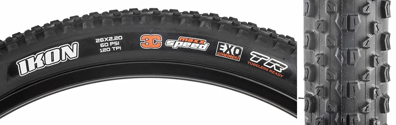 Maxxis Ikon Tire 26”x2.20 Folding Tubeless Ready 3C Maxx Speed, EXO 120TPI, Black.